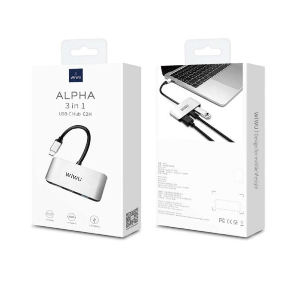 WiWU 3 in 1 Type-C Hub (C2H) – USB-C Adapter for Laptops